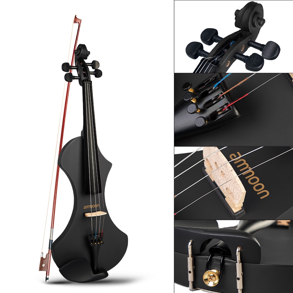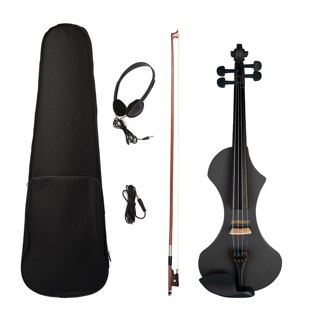 Premium eletric violin-ammoon 4/4 size violin with glossy varnished surface, comes with headphone, 6.35mm cable and carrying bag.