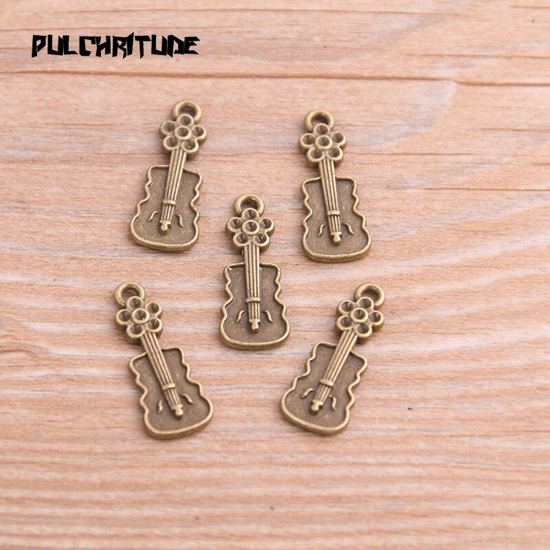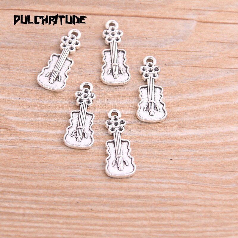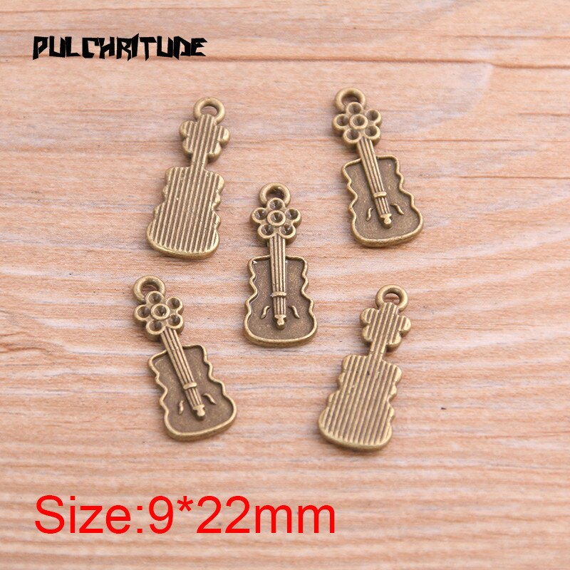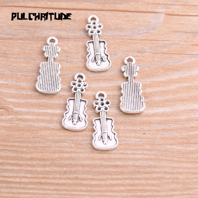 20PCS 9*22mm New Product Two Color Flower Violin Charms Music Pendant Jewelry Metal Alloy Jewelry Making